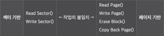 보는바와 같이 수행하는 작업이 섹터와 페이지 기반이 다르기 때문에 직접적으로 사용할 수 없다.