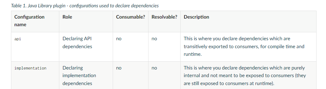 멀티모듈을 사용하다보면 종종 build.gradle에서 의존성을 추가할 때 API, Implementation을 확인 할 수 있고 여러 자료들을 찾아보다보면 헷갈려서 둘의 차이를 공식 문서를 보고 정리했다.