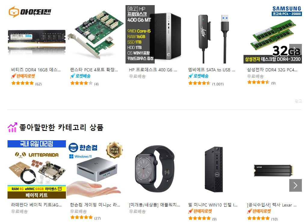 해당 페이지는 쿠팡 메인 페이지에 들어갔을 때 랜더링 되는 이미지들이다.