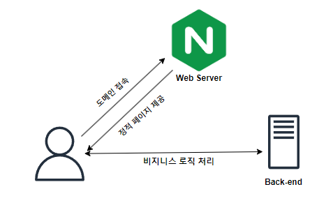 사용자가 도메인에 접속하게 되면 웹 서버는 정적 페이지 (HTML, CSS, JavaScript)를 제공하고