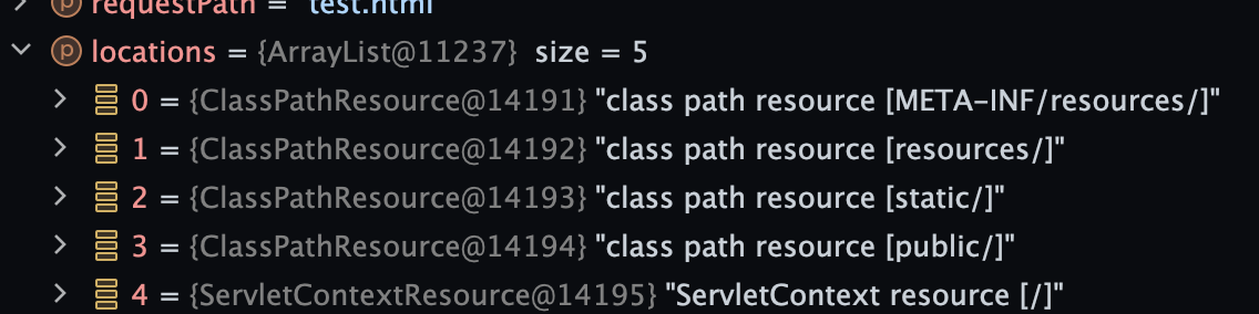 다음 5개의 리소스 경로를 제공하는데, 이 경로 안에 있는 리소스 파일이 아니면 찾지 못하게 된다.